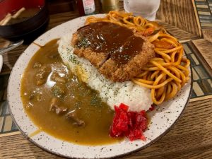 食べ始めてすぐに気づいたのであるが、カレーライスもナポリタンもそれぞれが1人前の分量である。