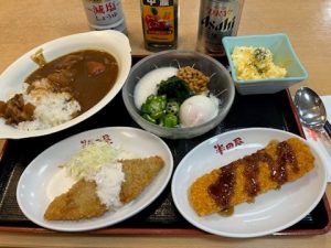 フライがダブってしまったが、それを補って余りある玉子サラダねばねば