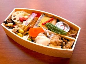 今回購入した香取弁当、「原材料の時点から保存料を使わない一から職人手づくりのお弁当です」ということで、色々なおかずが詰まっている。