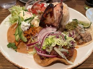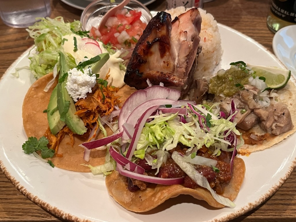 料理はランチメニューの中からタコスとロティ―チキンのプレート