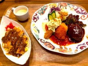 今回キッチンゴンで食したゴンランチは、件のピネライスハンバーグ、エビフライ、カニコロッケが付く。