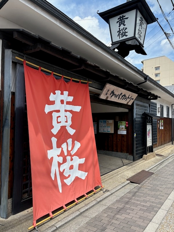 このまま伏見桃山駅に戻ろうとした矢先、「黄桜」と白で染め抜かれた大きな暖簾(縦長の横断幕というべきか)が目に入った。