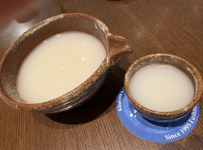 地ビールなどもあったが、ここは日本酒を続けようと片口に入ったにごり酒を注文する。