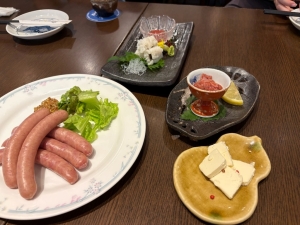 お酒ばかり飲まないように黒豚のソーセージやだし巻玉子なども注文。